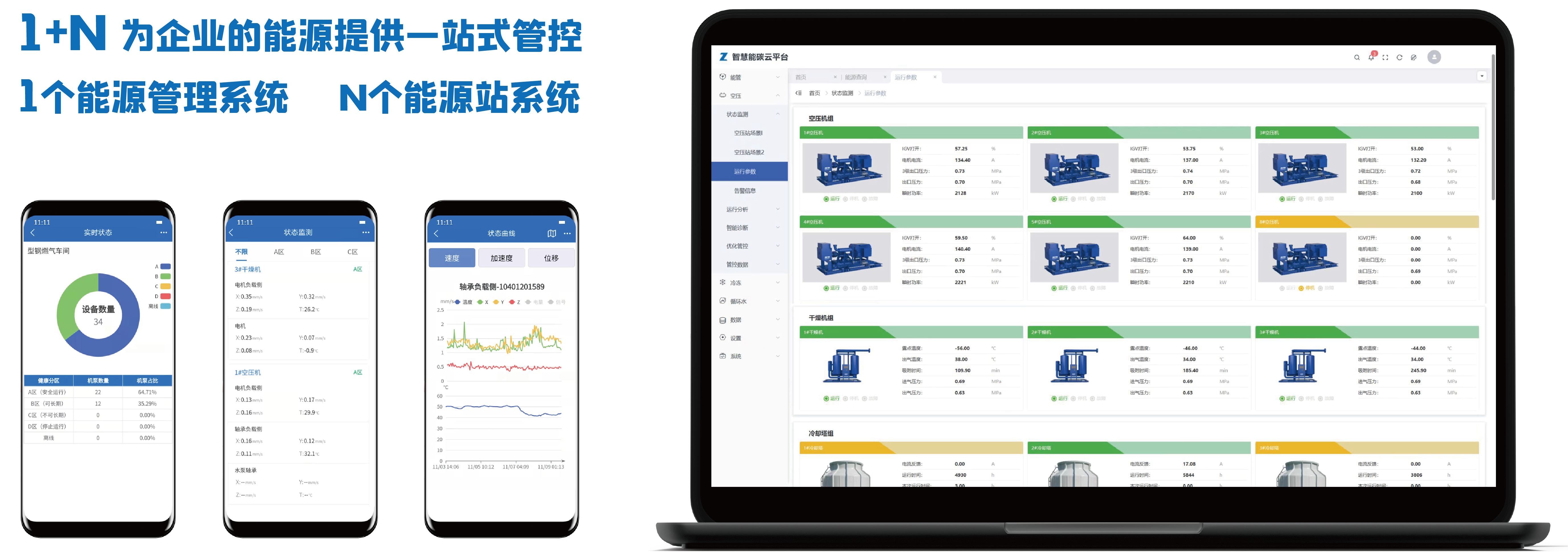 智慧能碳云是PA旗舰视讯节能三步法中的首个环节,致力于为企业提供能源数字化分析管控一站式服务。平台采用1+N模块化设计,即1套能管系统+N个能源站模块(空压站、冷冻站、循环水站……),从横向和纵向两大维度将企业能效管理与能源站数字化管控深度结合,实现用户在能源管控过程中的管理节能和技术节能,为企业绿色低碳数智化转型赋能助力。